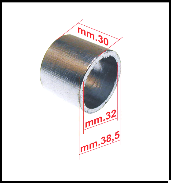 Peça metálica cilíndrica oca com dimensões indicadas em vermelho