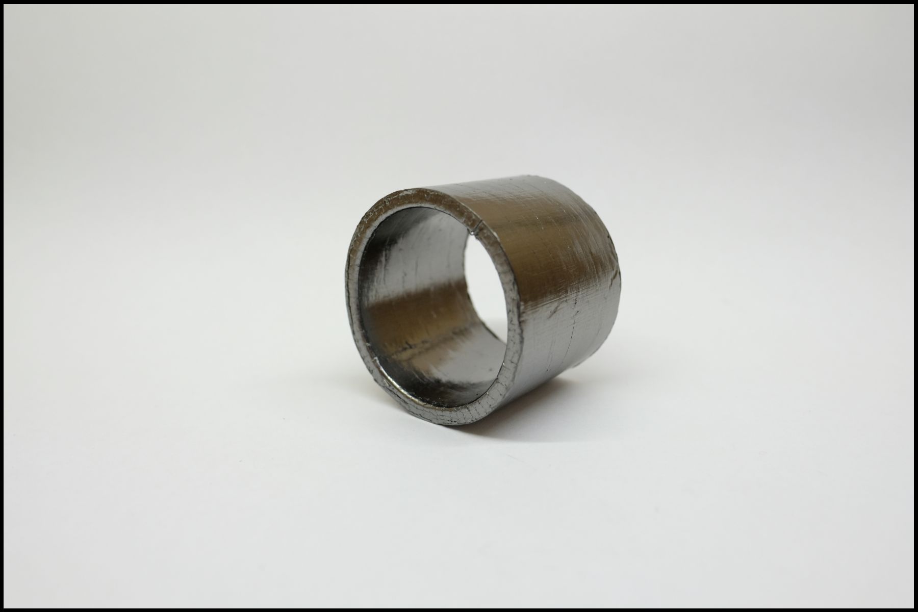 Anel cilindrico preto com acabamento brilhante e textura irregular sobre fundo branco