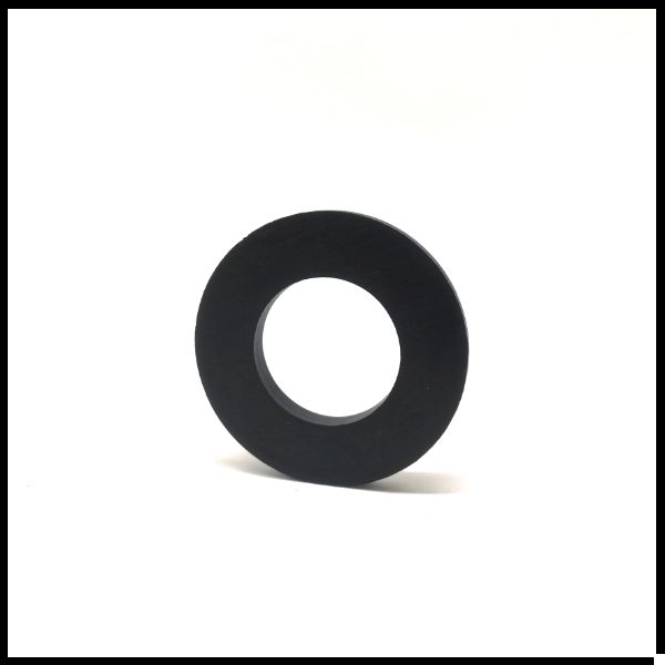 Arruela negra circular com buraco central, fundo branco