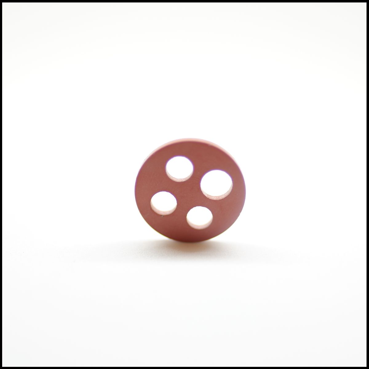 Botão redondo cor de rosa com quatro buracos
