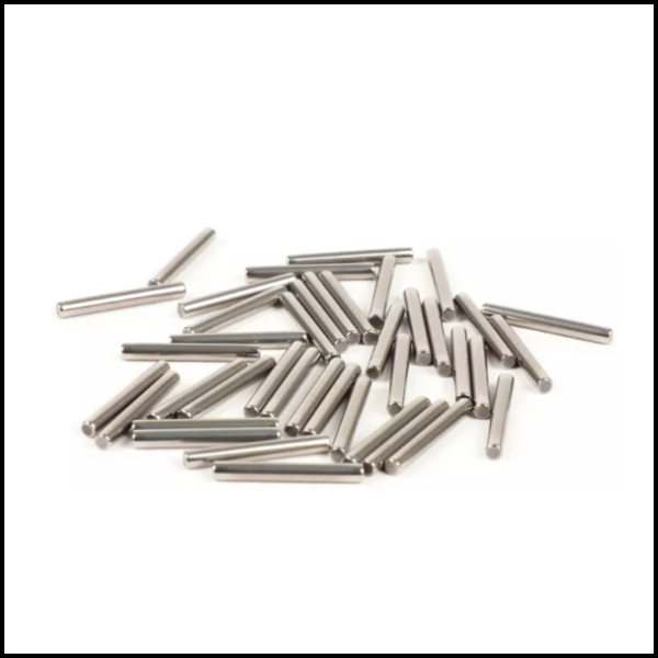 pinos metálicos cilíndricos prateados sobre fundo branco