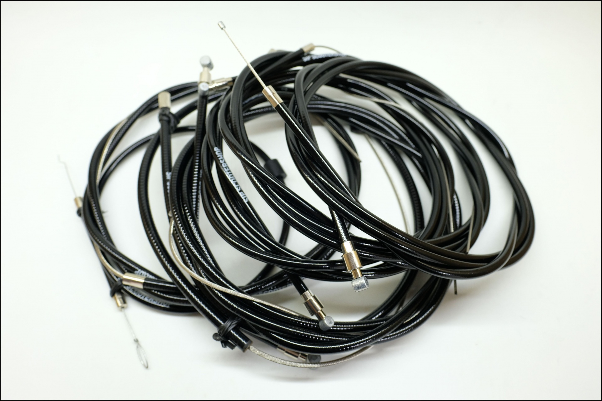 Conjunto de cabos pretos para bicicleta com extremidades metálicas