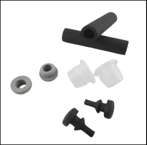 Conjunto de peças de borracha e silicone em várias cores sobre fundo branco