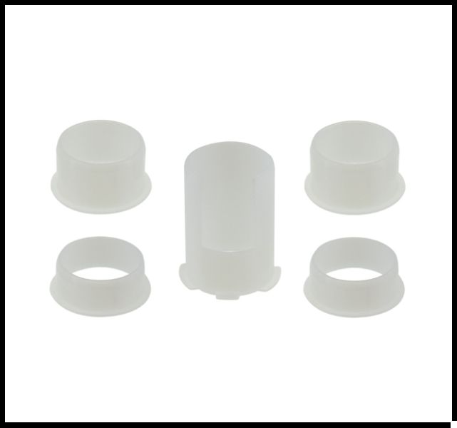 Peças plásticas brancas translúcidas em conjunto sobre fundo branco