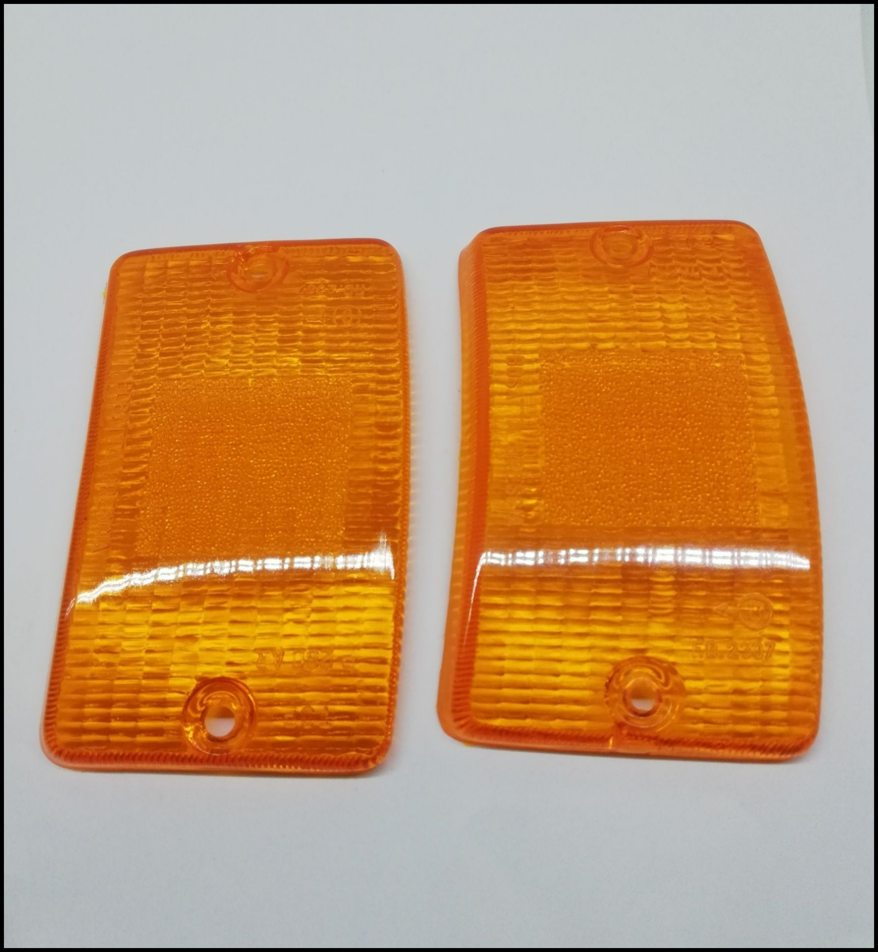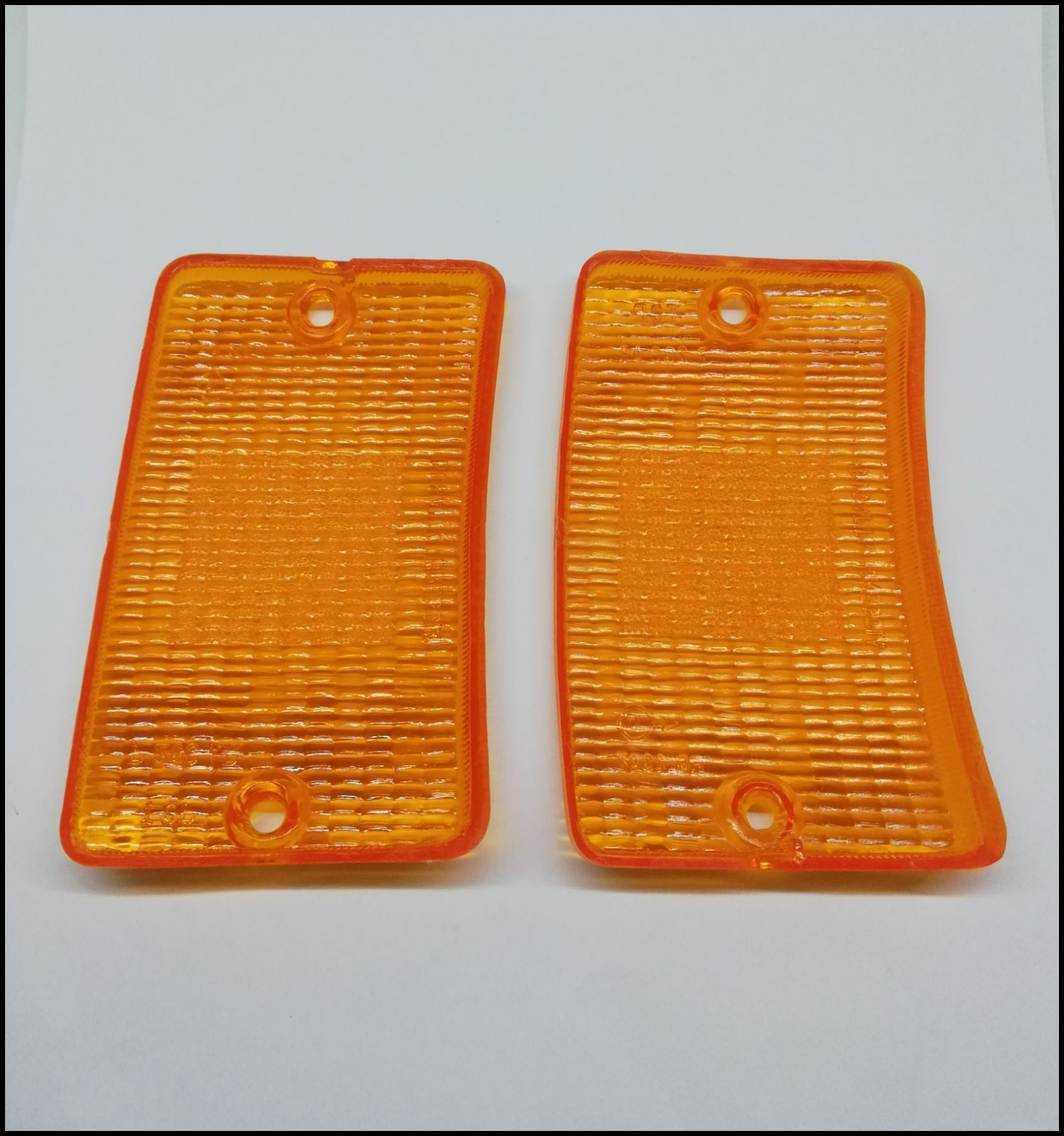 Dois recetores laterais de luz alaranjados de plástico para automóvel