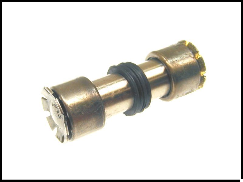 Axle metálico prateado e bronze com anel de borracha preta no centro