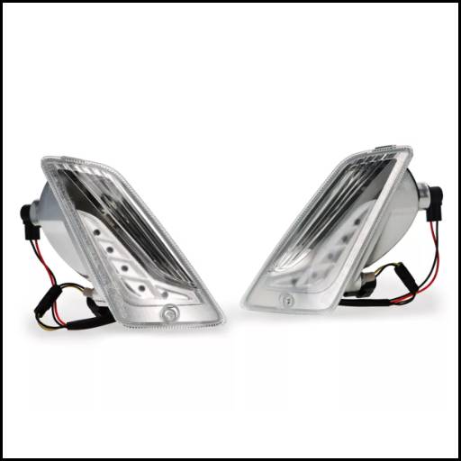 Par de faróis automóvel transparentes com detalhes prateados e pretos