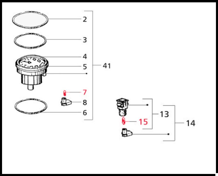 Desenho técnico com peças mecânicas numeradas