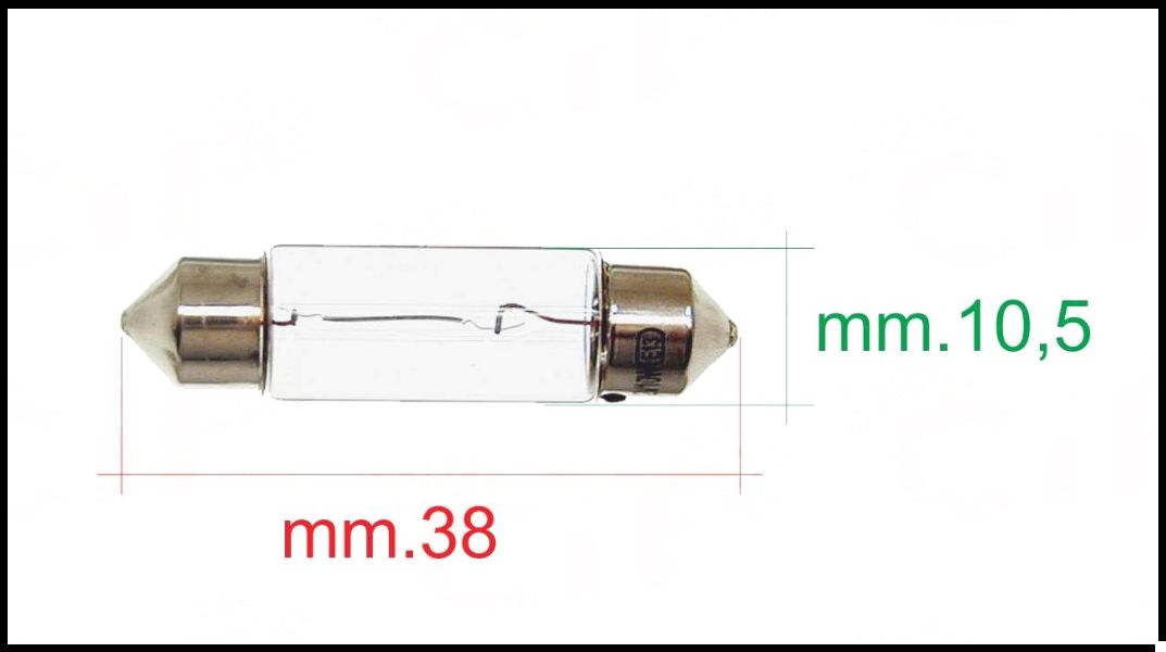 Lâmpada tubular transparente com extremidades metálicas e dimensões mm.38x10,5
