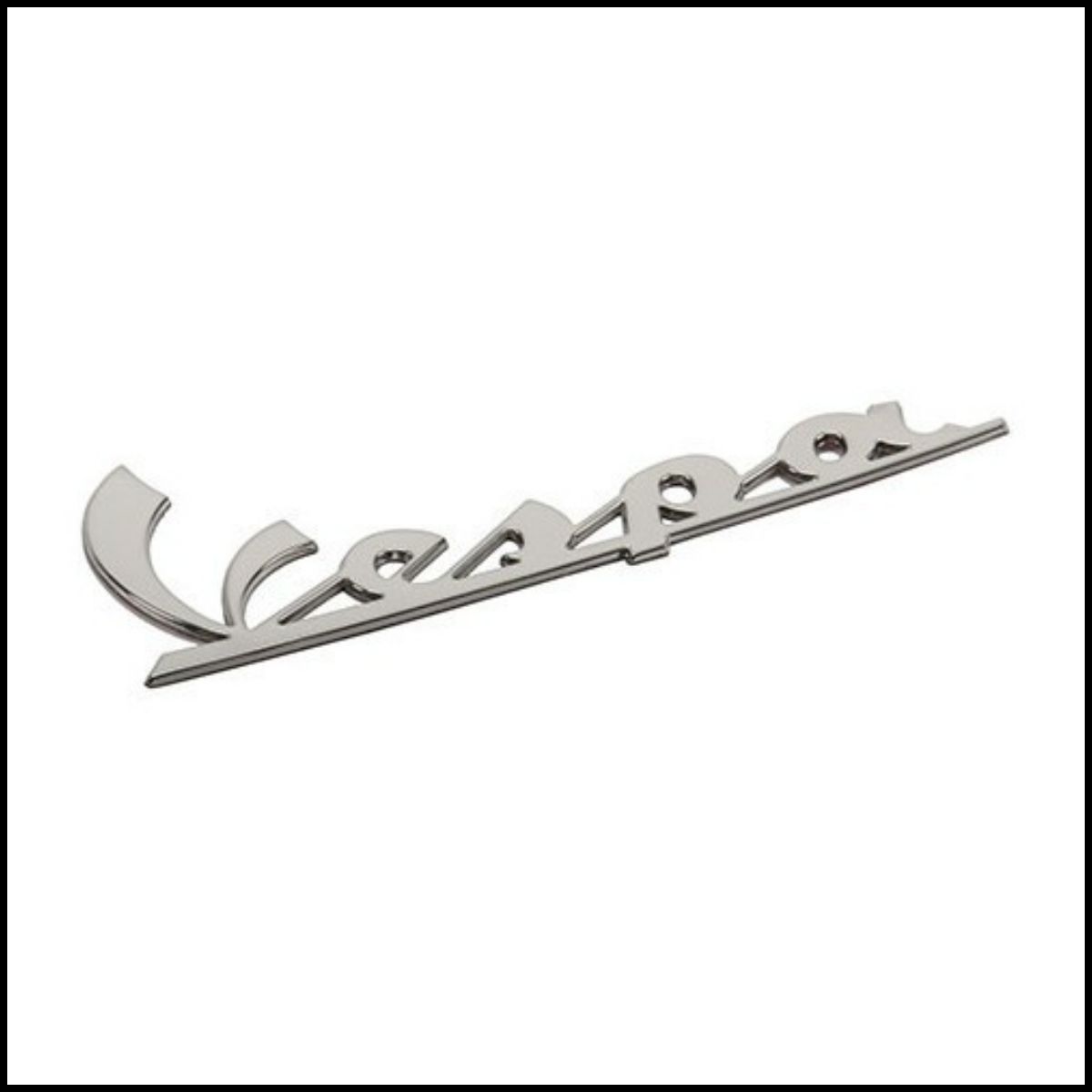 Emblema metálico Vespa prateado em fundo branco