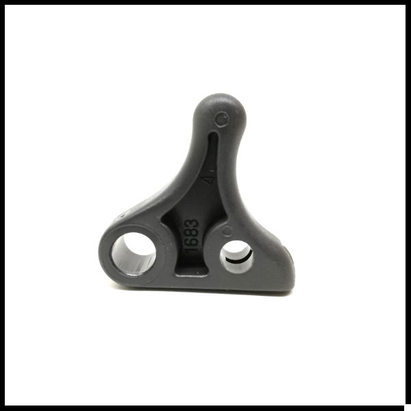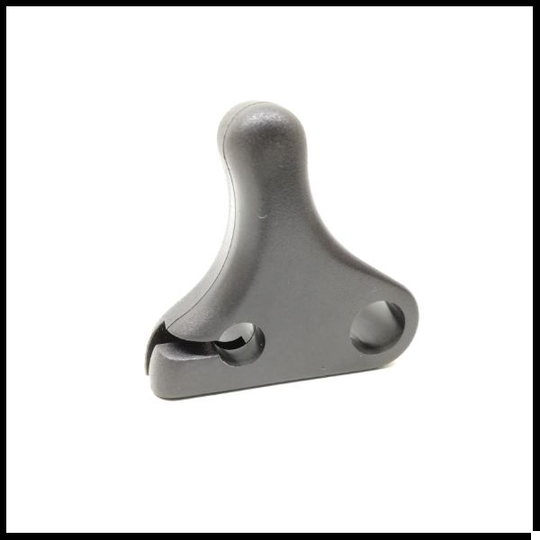 Peça triangular cinzenta em plástico com orifícios redondos