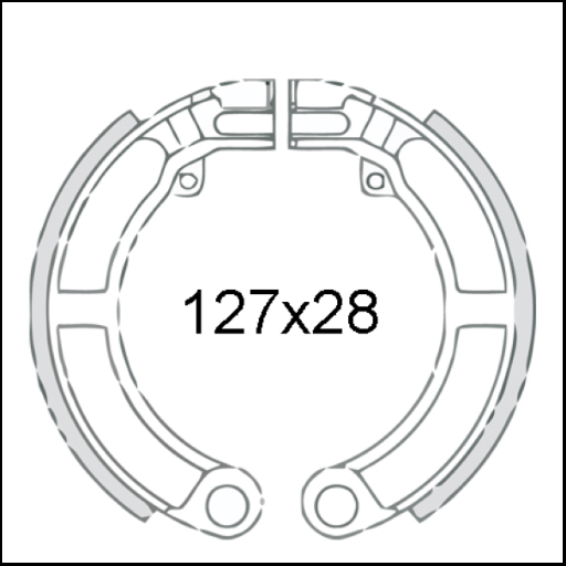Desenho técnico de pastilhas de travão circulares com números 127x28