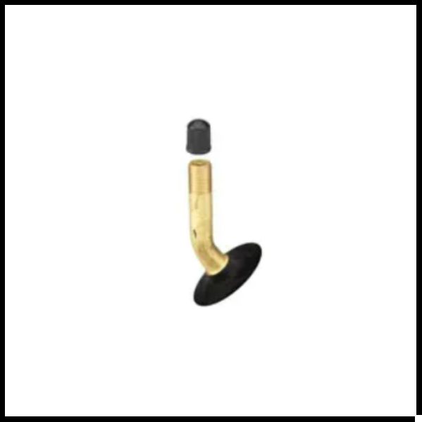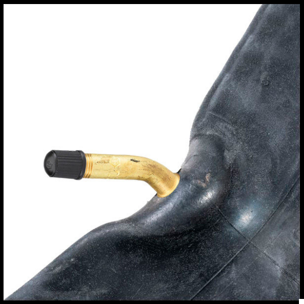 Tubo interno de pneu preto com válvula dourada curva e ponta preta