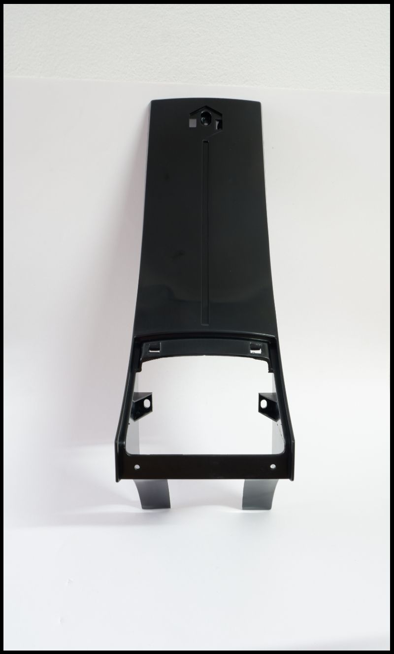 Peça plástica preta com recorte quadrado sobre fundo branco
