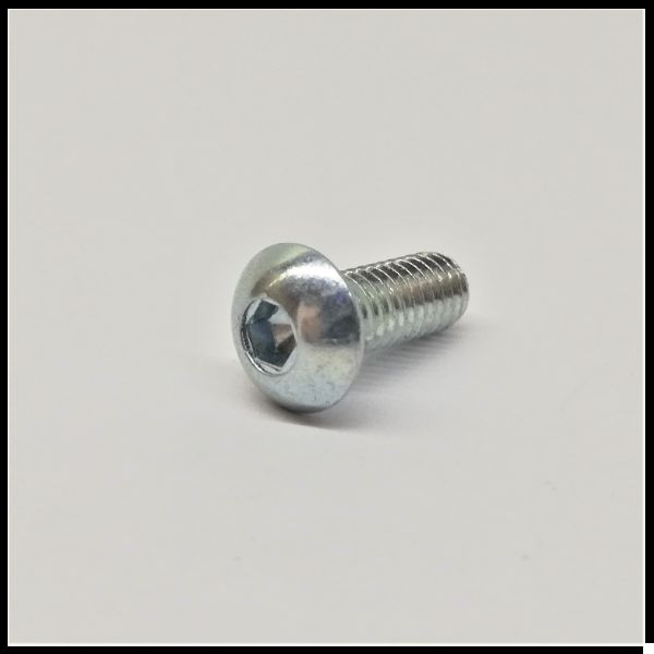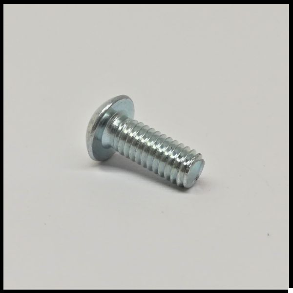 Parafuso metálico prateado com cabeça cilíndrica em superfície branca