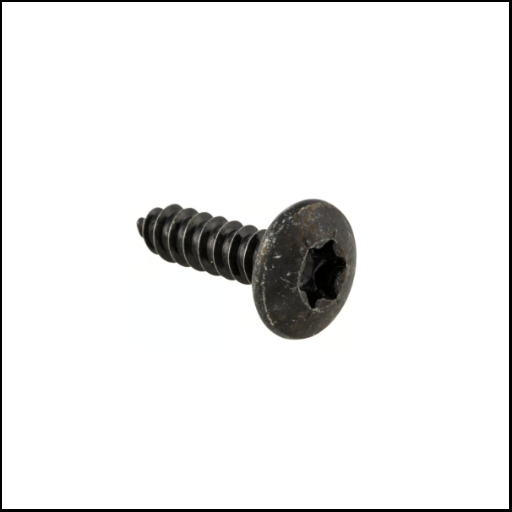 Parafuso preto de metal com cabeça chata e fenda estrela