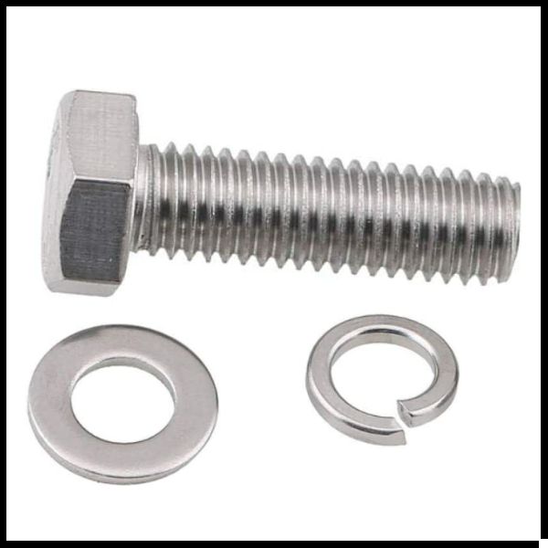 Parafuso hexagonal com arruelas de aço inoxidável prateado