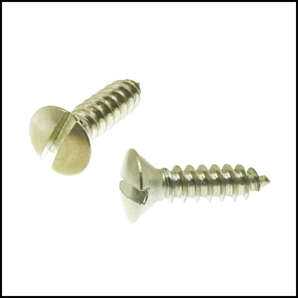 Dois parafusos de metal com cabeça chata sobre fundo branco