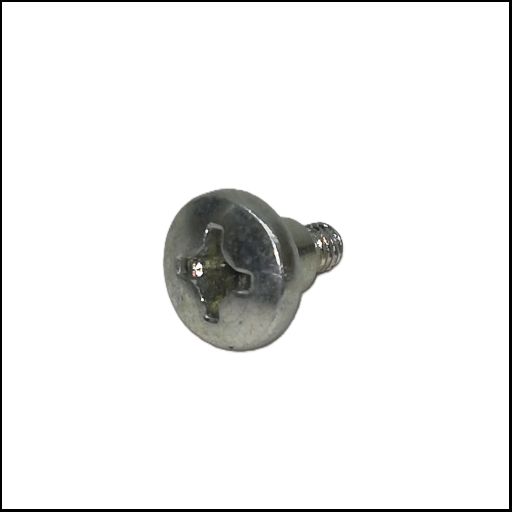 Parafuso metálico prateado com cabeça redonda e fenda tipo Phillips