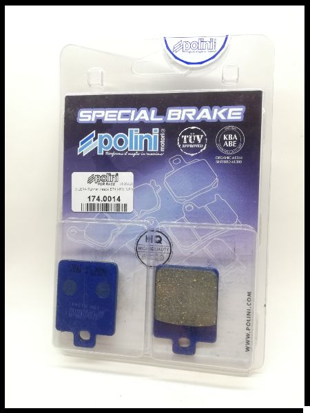 Conjunto de pastilhas de travão Polini Special Brake em embalagem azul e transparente com texto e selos de qualidade