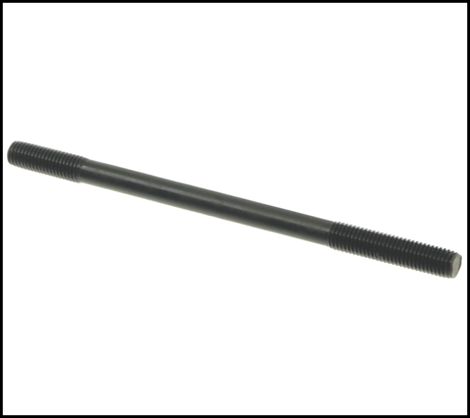 Barra roscada metálica preta com rosca em ambas as extremidades
