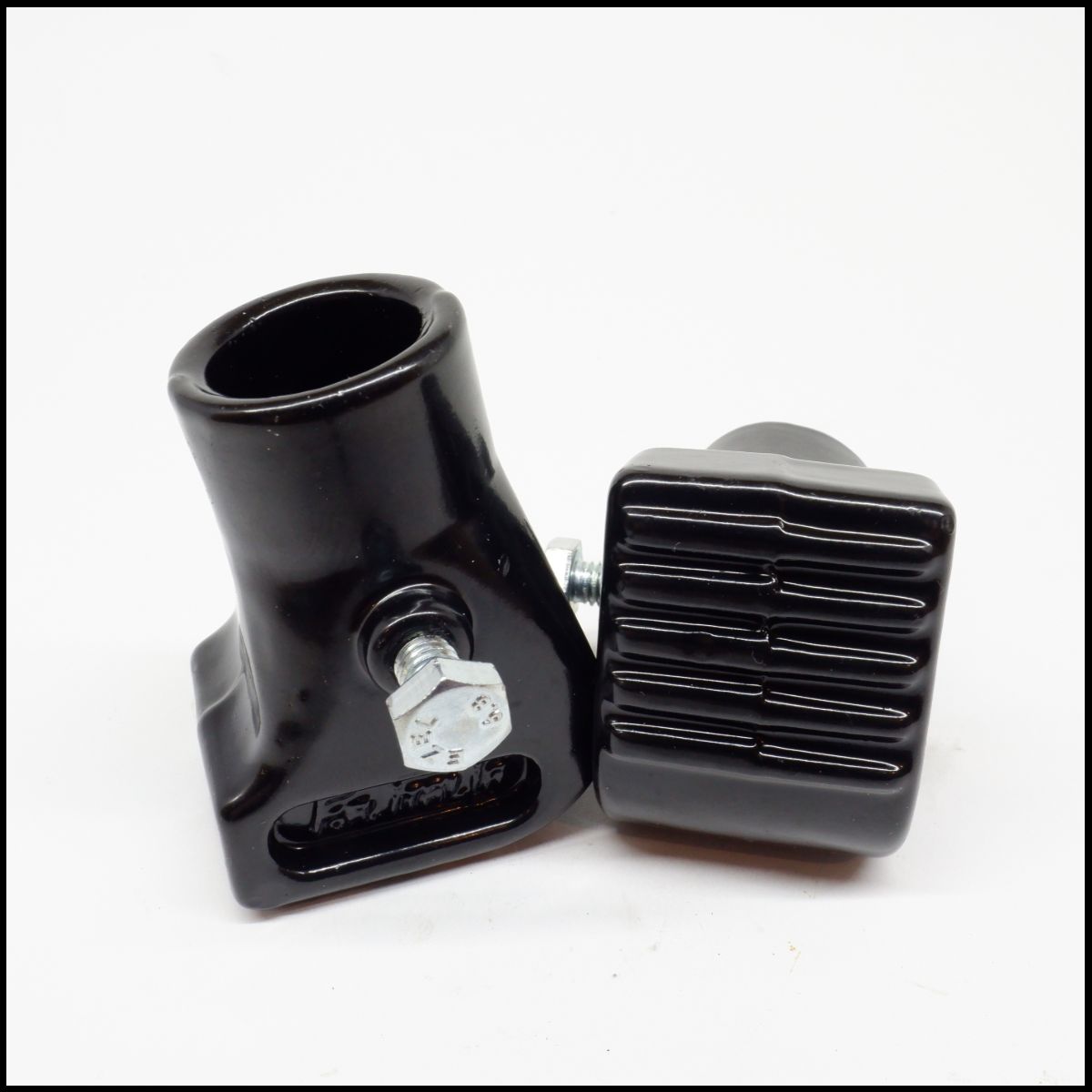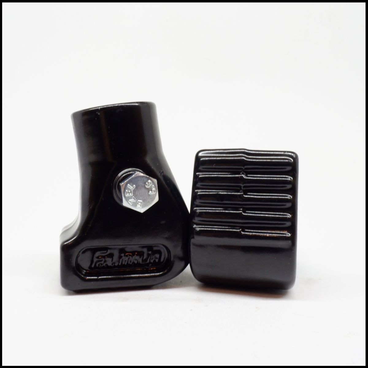Conjunto de dois pedais ou apoios pretos com parafuso metálico e textura canelada