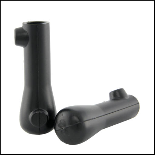 Peças de plástico pretas cilíndricas num fundo branco