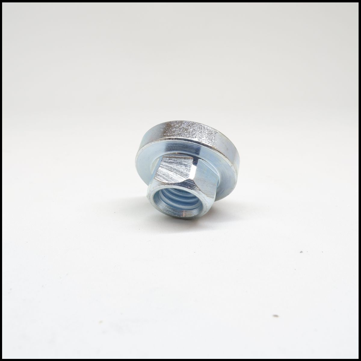 Parafuso flangeado metálico prateado sobre fundo branco