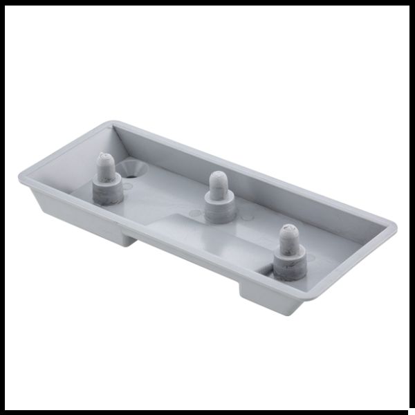Forma retangular cinza em plástico com três elementos cilíndricos