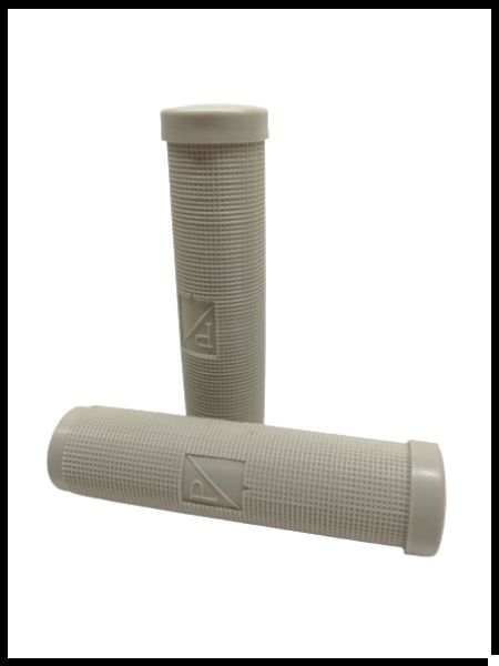 Punhos para bicicleta cinza claro com textura e logo triangular