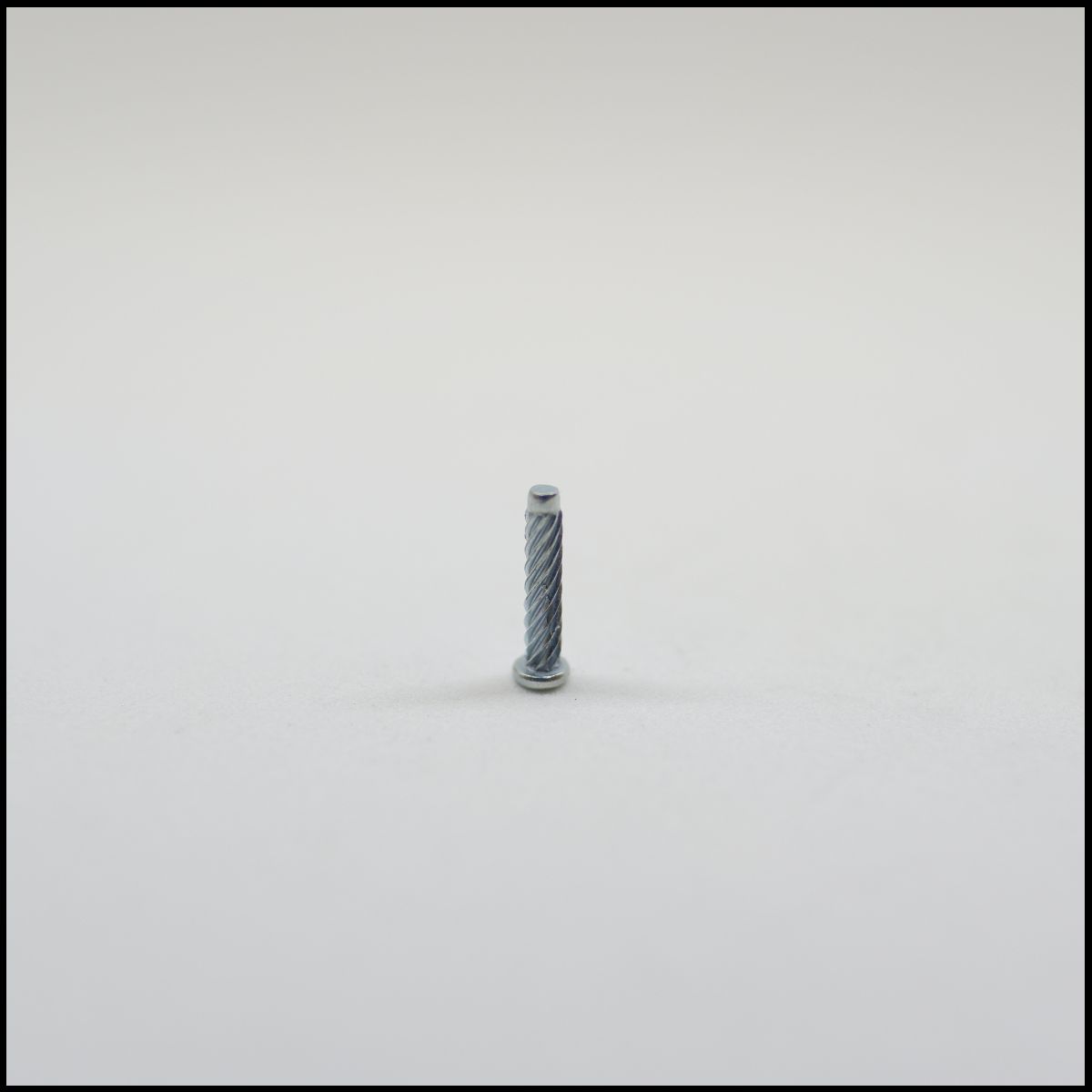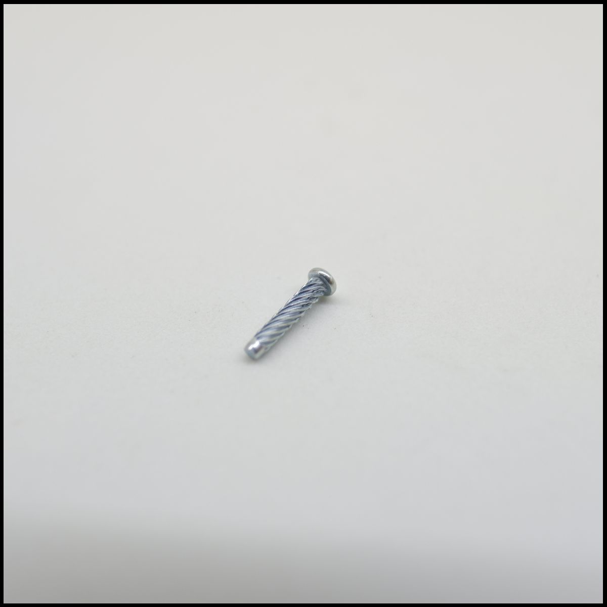 Parafuso pequeno de metal prateado sobre superfície branca