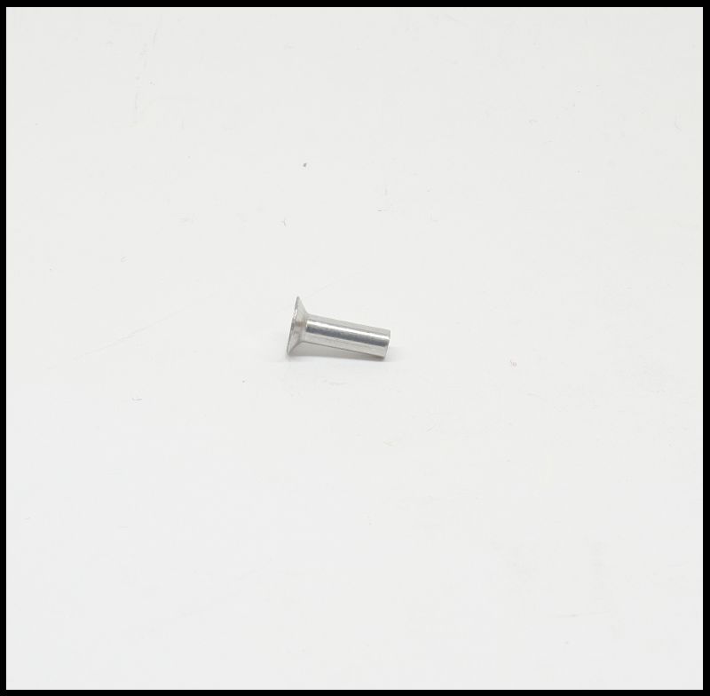 Pequeno parafuso ou rebite metálico prateado em fundo branco