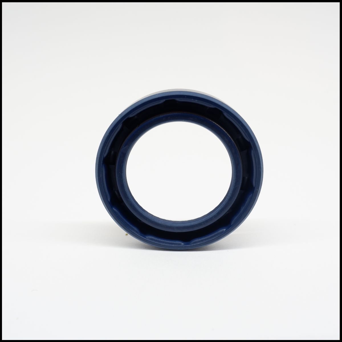 Vedante circular azul escuro em fundo branco.