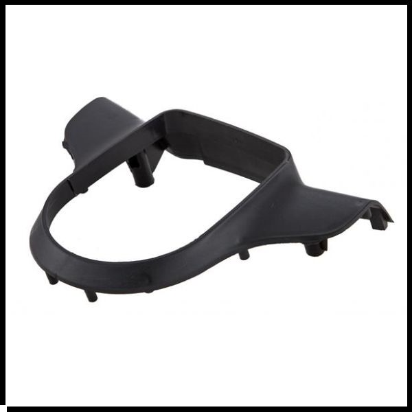 Componente plástico preto em forma circular com abas sobre fundo branco