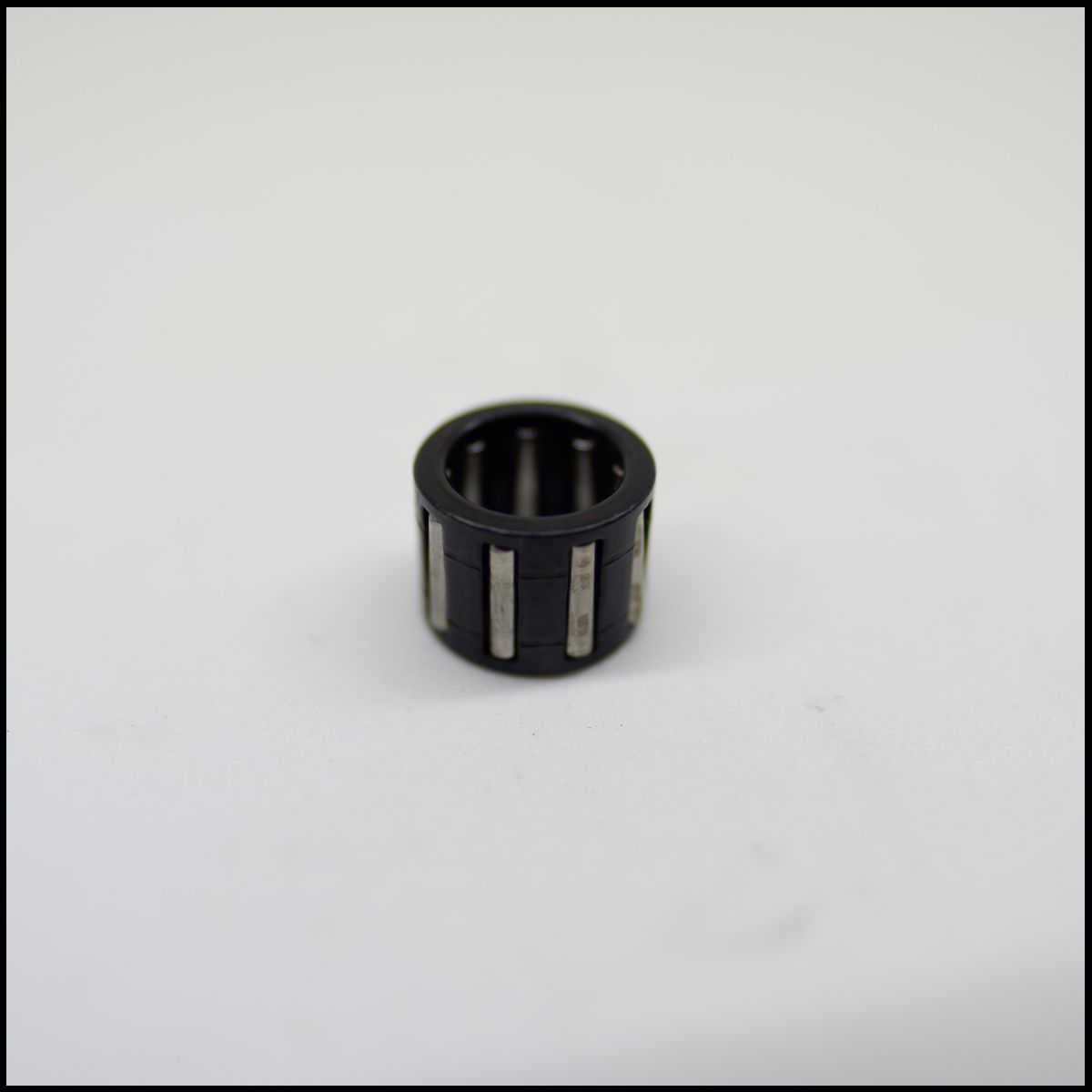 Rolamento de esferas de agulhas preto pequeno em fundo branco