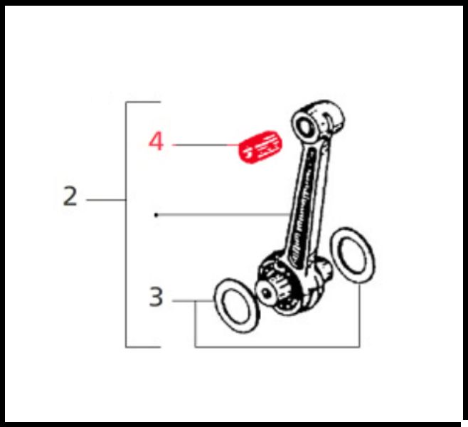 Desenho técnico de uma peça de motor com três números em vermelho