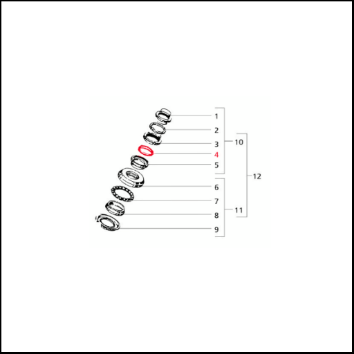Conjunto de peças circulares numeradas em esquema, uma peça destacada a vermelho