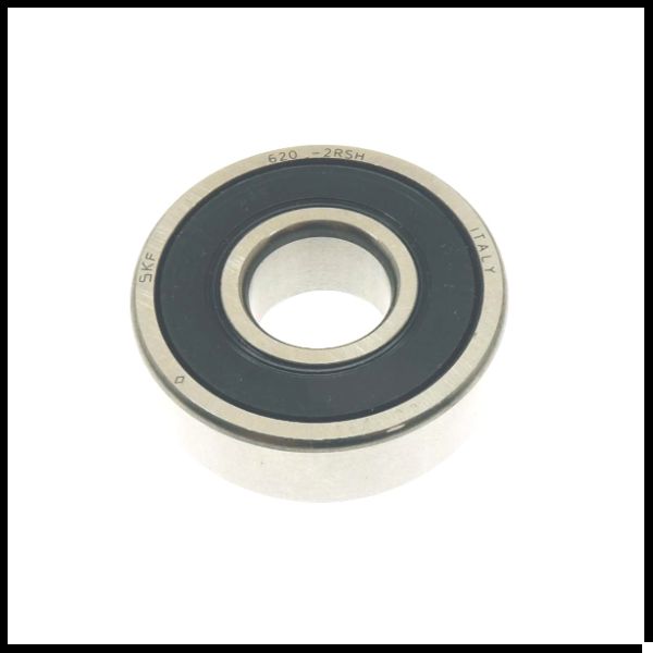 Rolamento de esferas metálico com vedação preta e inscrições SKF 620-2RS1 FL ITALY
