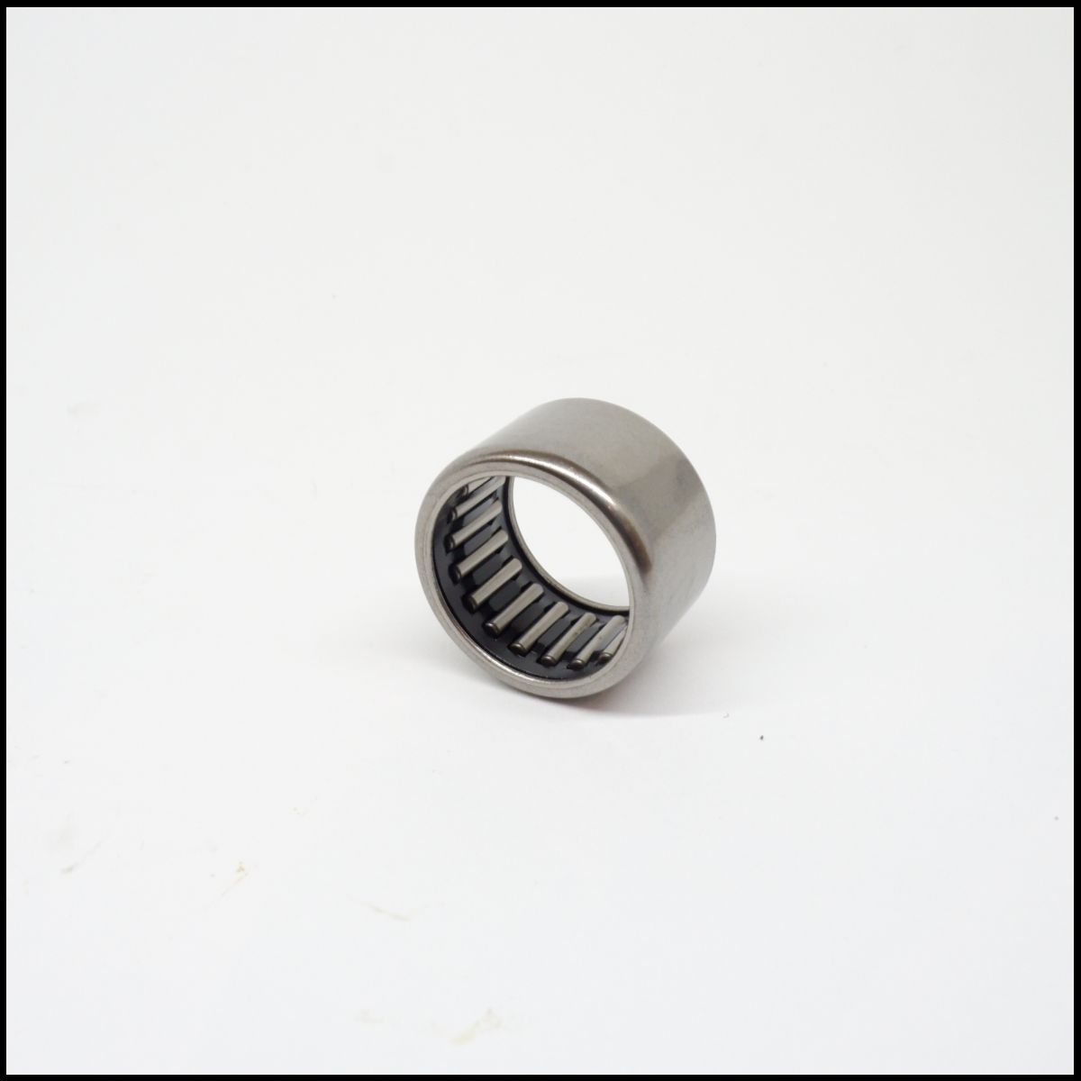 Rolamento de agulhas cilíndrico metálico sobre fundo branco