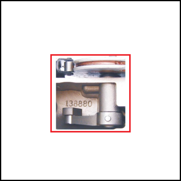 Peça metálica mecânica com número 138880 em fundo branco