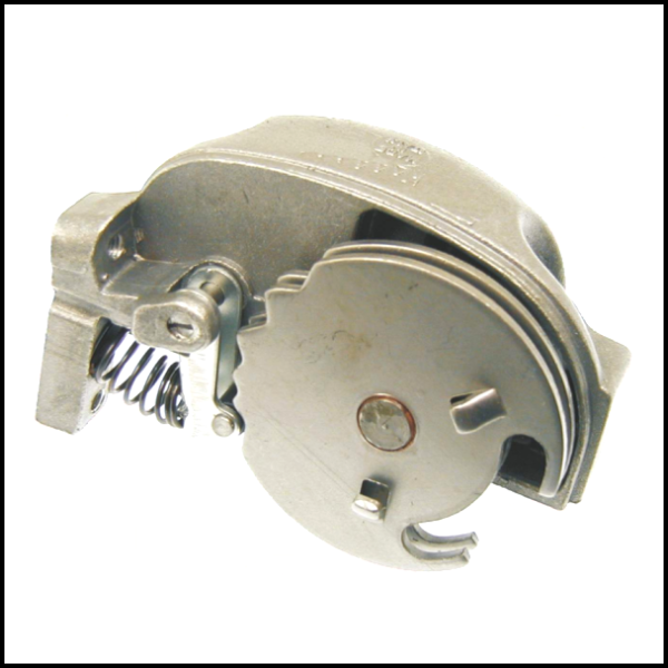 Peça metálica circular com mola e alavanca