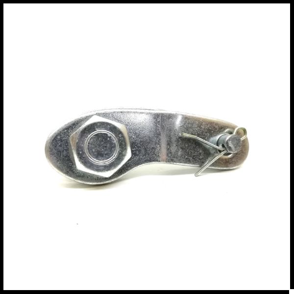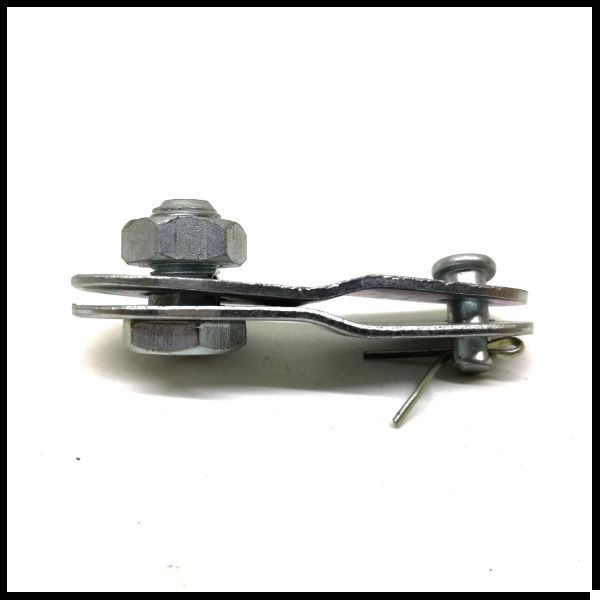 Peça metálica prateada com porca e pino de segurança