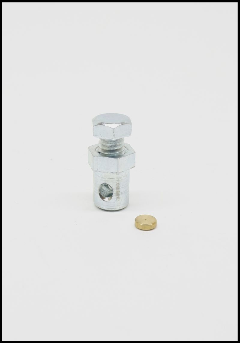 Parafuso e porca cromados com peça metálica dourada