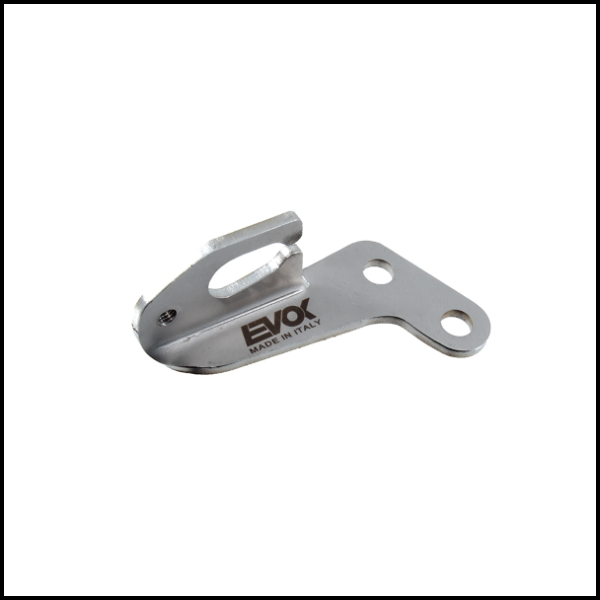 Suporte metálico prateado com inscrição EVOL MADE IN ITALY