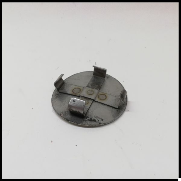 Peça metálica redonda com presilhas em fundo branco