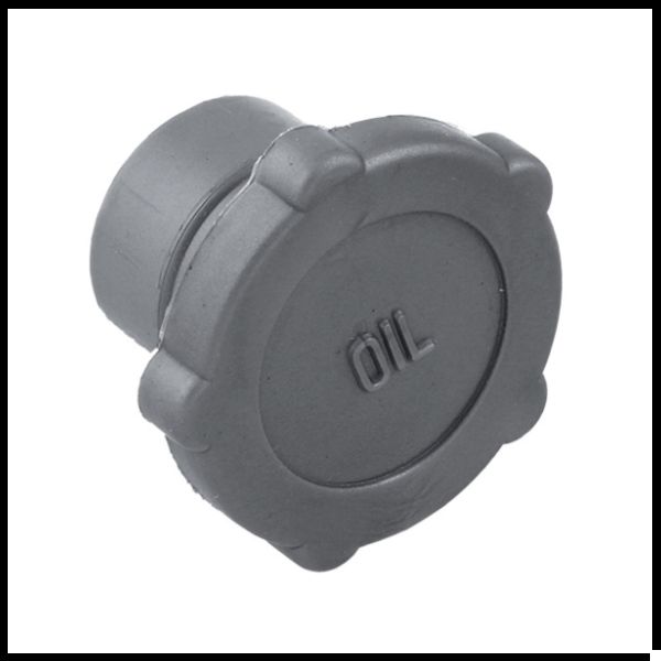 Tampa redonda cinzenta para óleo com palavra 'OIL' em relevo