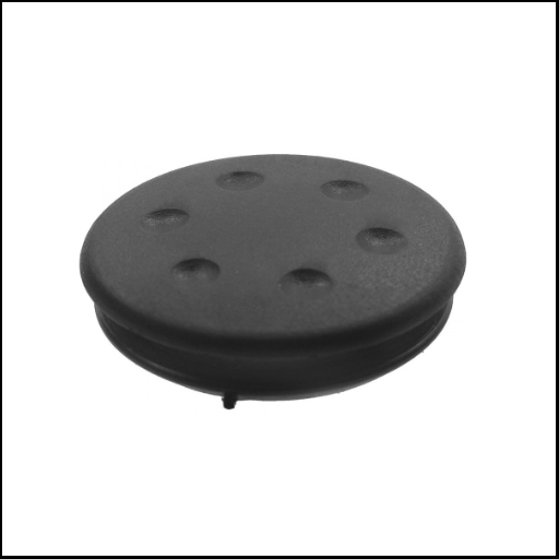 Tampão redondo preto com seis depressões circulares