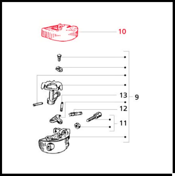 Desenho técnico de peças mecânicas desmontadas com numeração