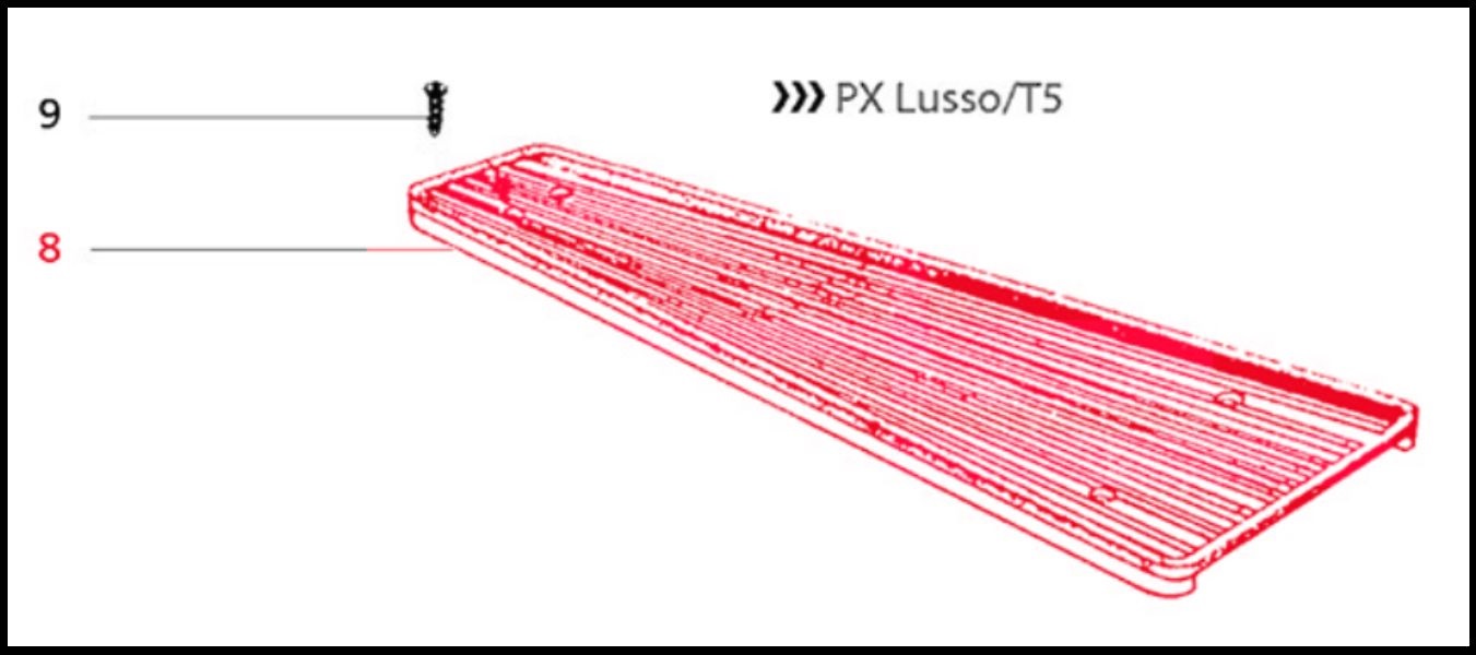 Peça técnica longa PX Lusso/T5 com superfície texturizada e marcações
