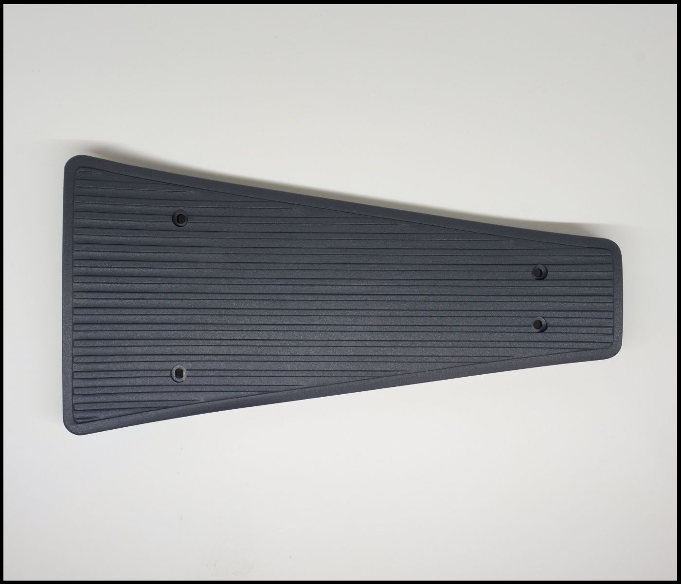 Placa trapezoidal preta com textura e furos para fixação